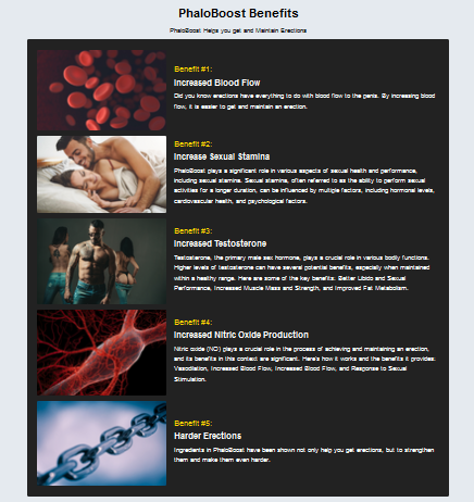 PhaloBoost is a revolutionary male sexual support formula designed to boost energy levels, improve stamina, increase libido, and enhance overall sexual performance.